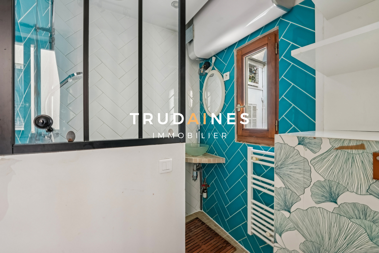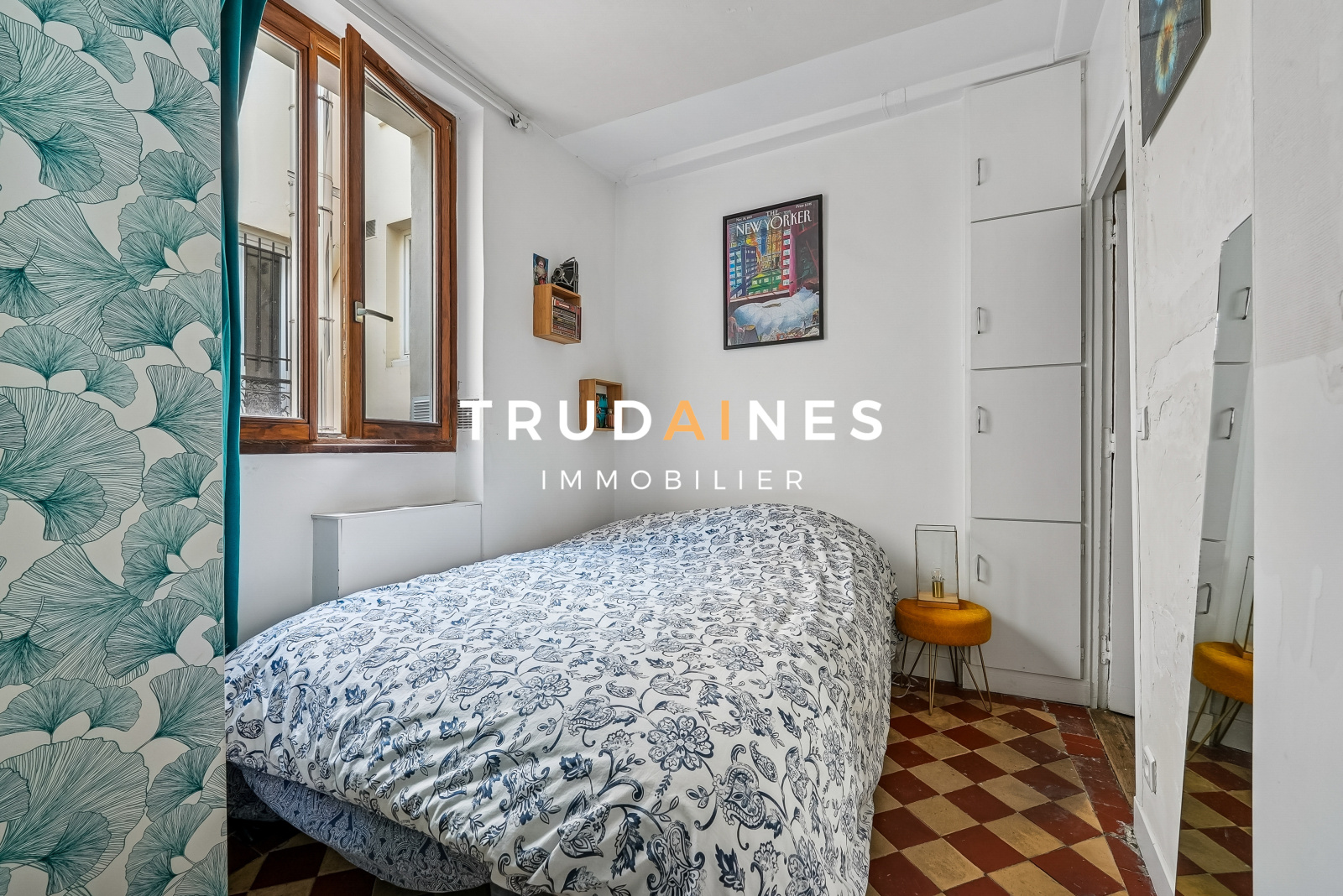 Le plan particulièrement bien pensé, offre une séparation claire des espaces : séjour de charme sur rue, chambre sur cour au calme, au milieu cuisine d’entrée aménagée et semi-équipée avec fenêtre, dégagement avec rangements et un WC indépendant. Placards encastrés sur mesure dans le couloir et dans la chambre. Parquet, moulures, rosace et belle hauteur sous plafond.