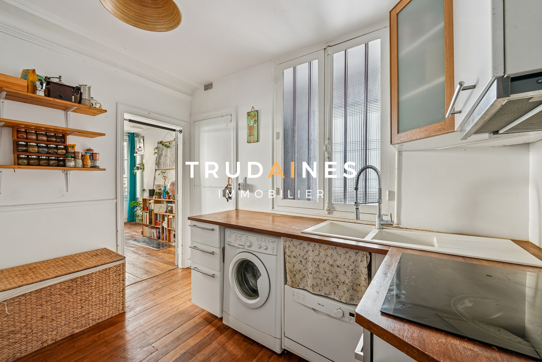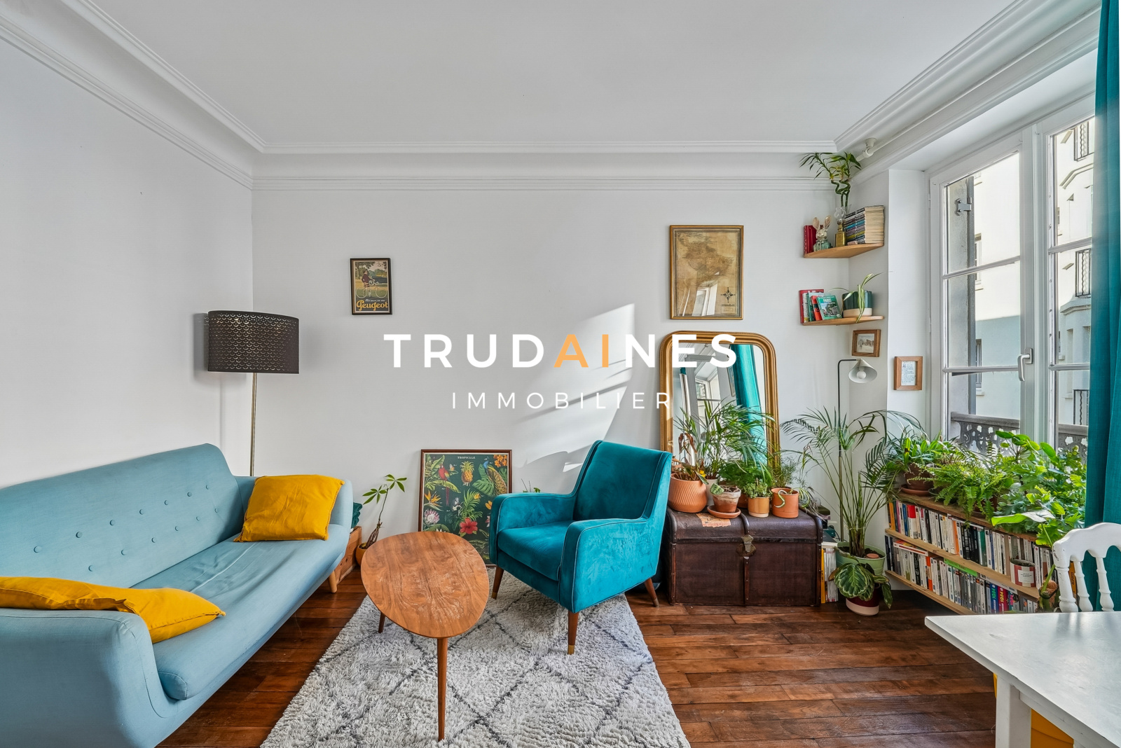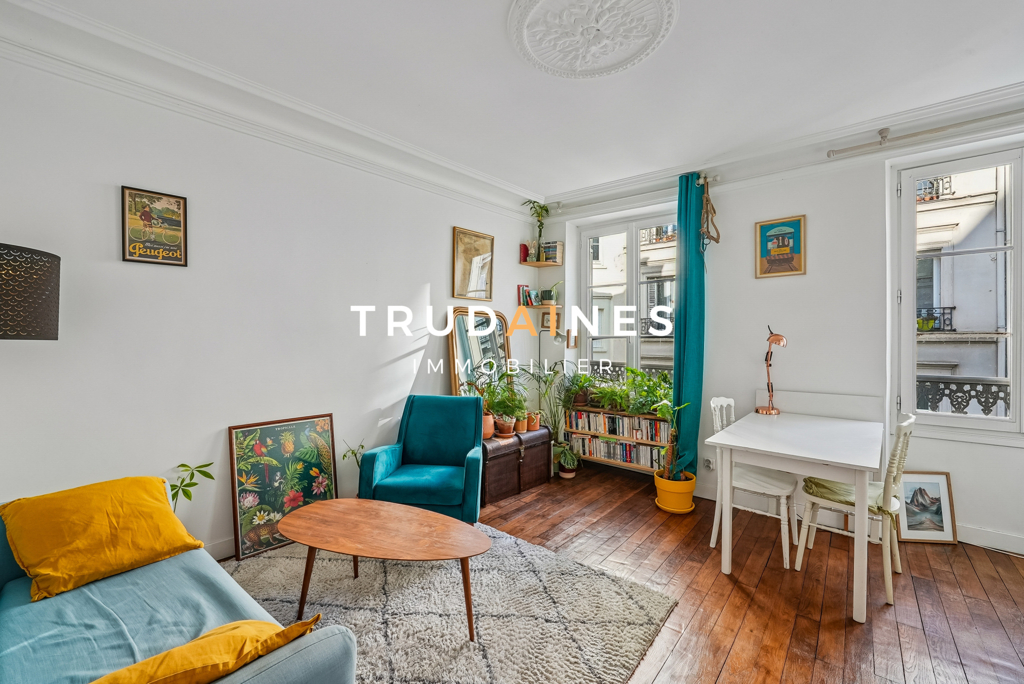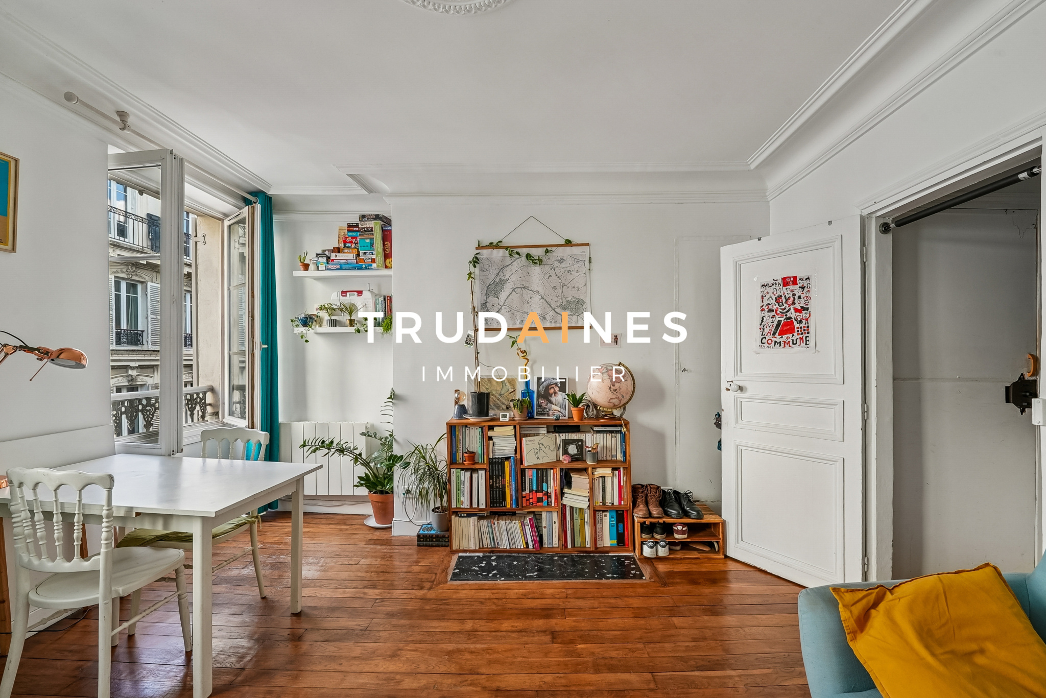 Appartement deux pièces lumineux, calme, traversant et au plan optimisé, de 35,24 m² Carrez, en 3ème étage, Paris XVII, Batignolles.