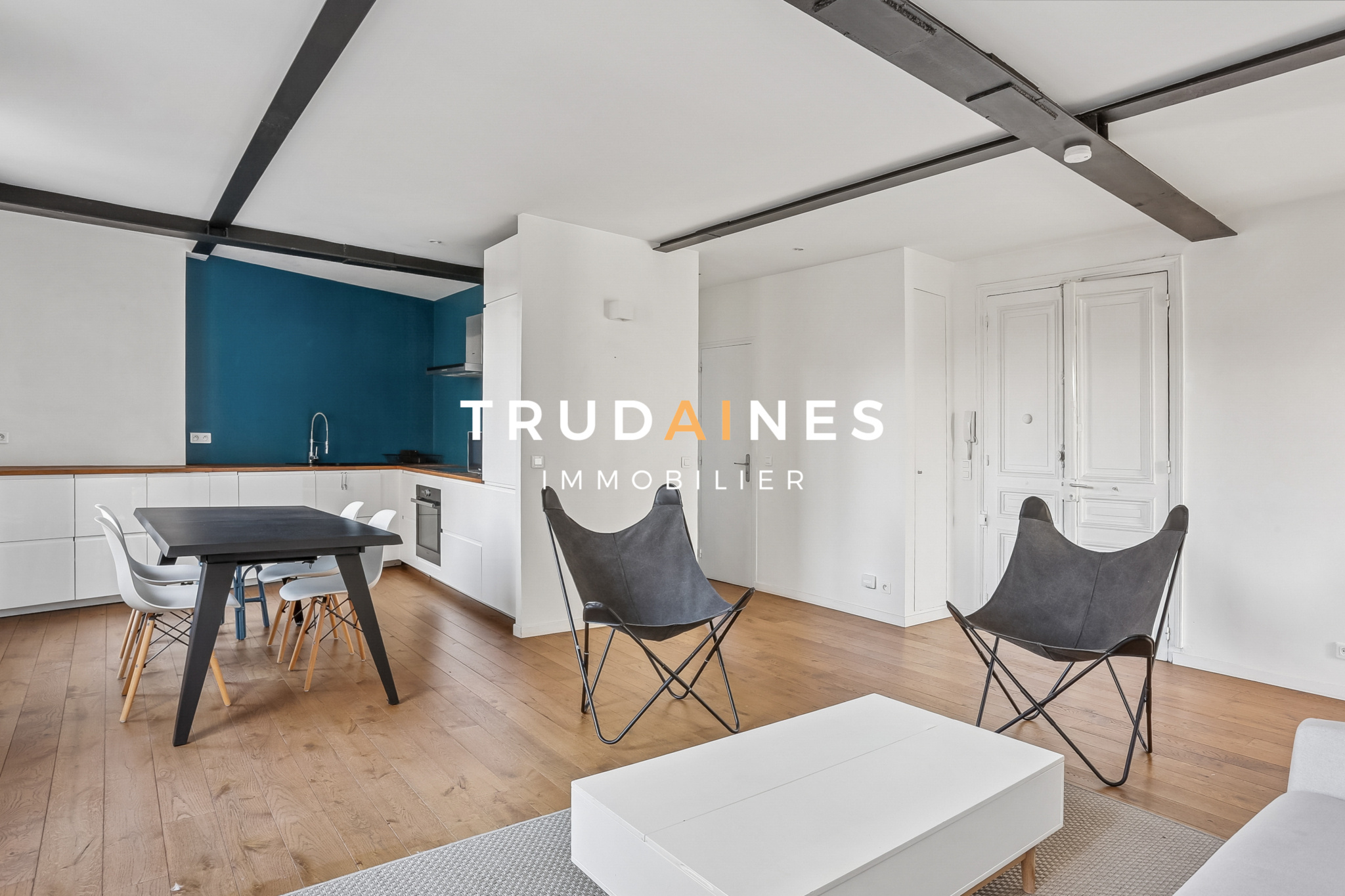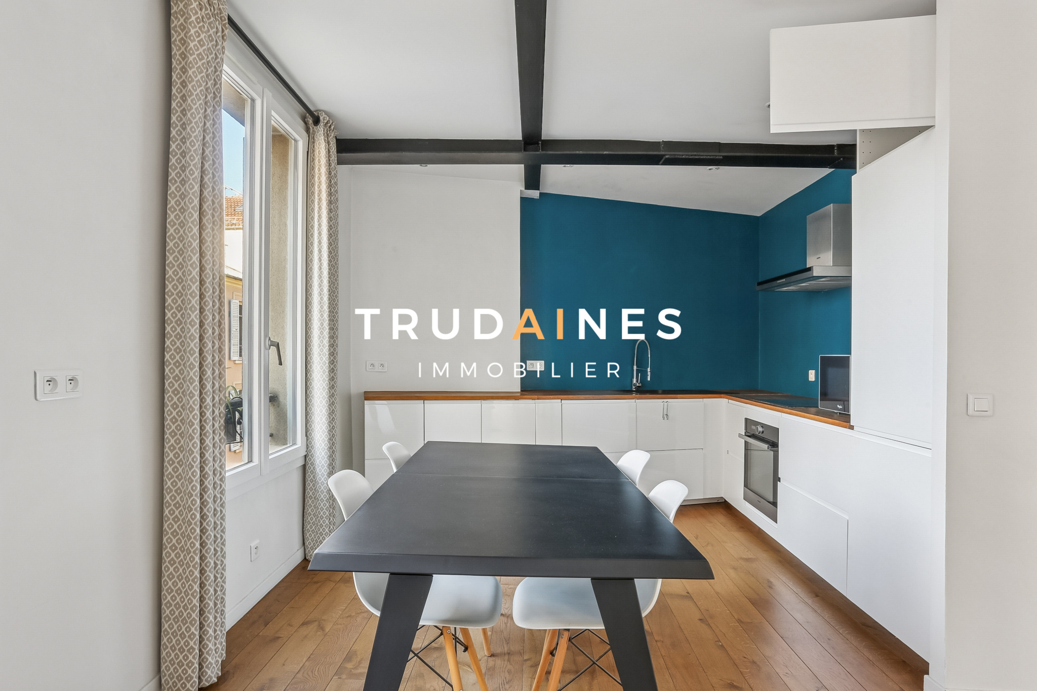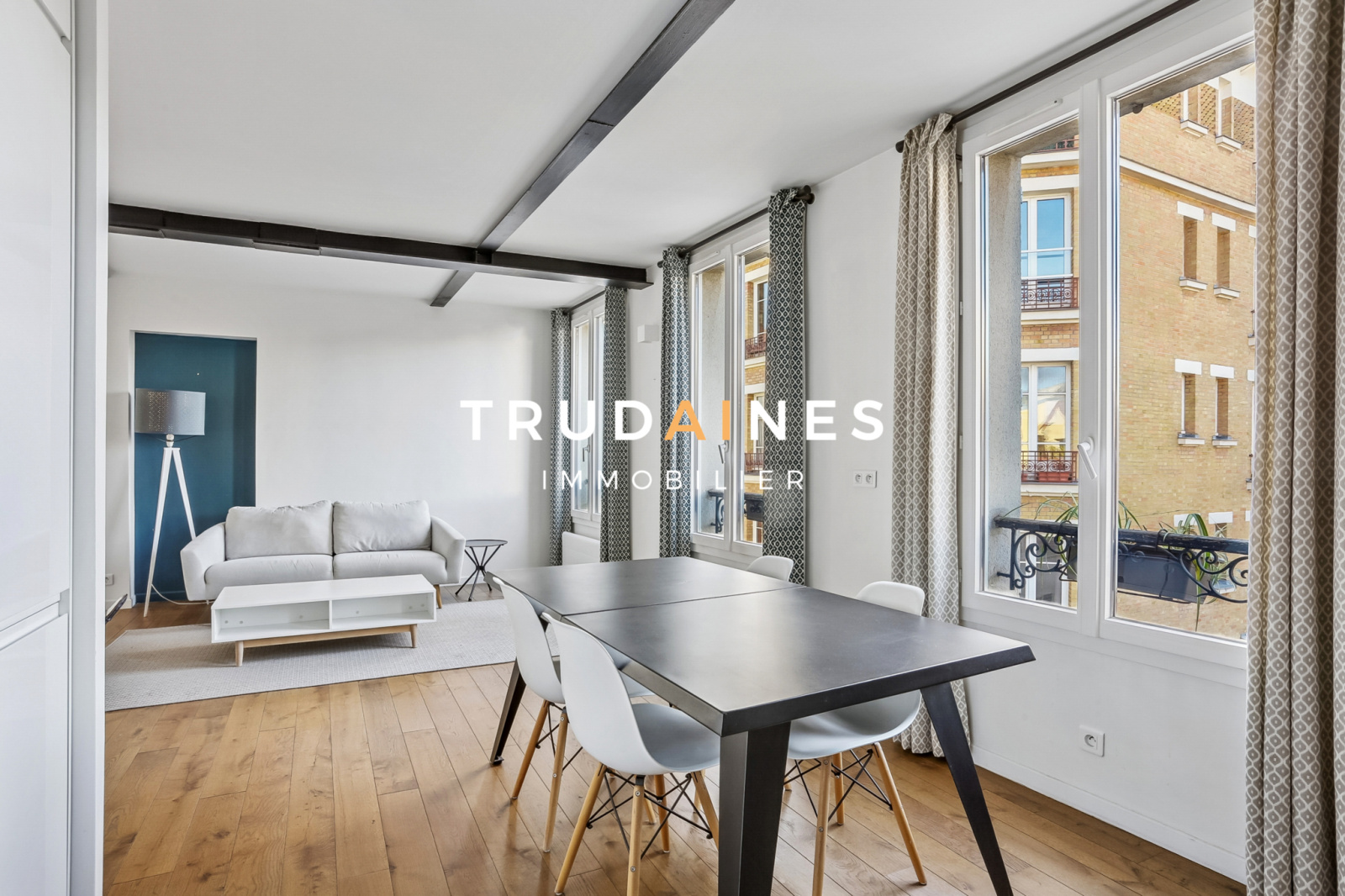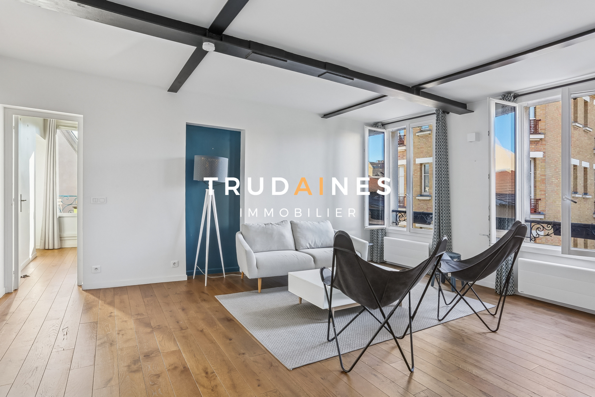 Puteaux (92800)Grand appartement deux pièces rénové de 60,5 m² Carrez, au 3ème étage sur 4, lumineux, traversant, calme, avec balcon filant et vue dégagée, à Puteaux centre, Place de l’Église.